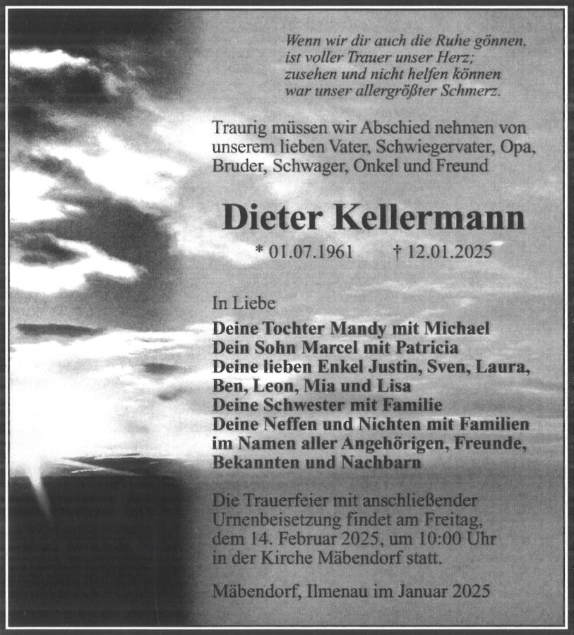 Nun bist du wieder vereint mit Deiner lieben Elke, ihr seid wieder vereint. Das tröstet uns ein bisschen. Für mich lebst du und Elke in unserem Herzen weiter!